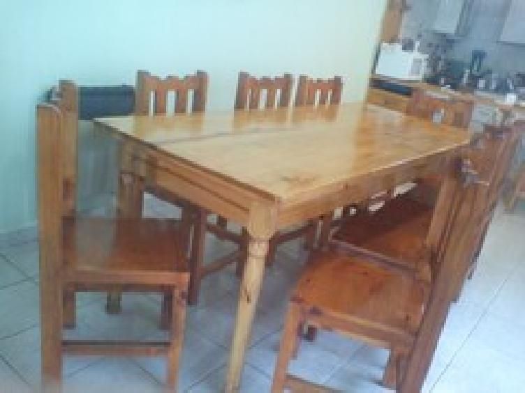 Vendo hermoso juego de comedor de madera de pino barnizada muy firme, compuesto por una mesa de 2,20 mts x 1,40 mts, con 10 sillas- Muy poco uso, lo vendo por una cuestión de espacio.