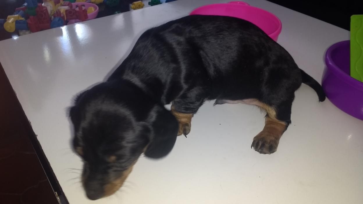 Ultimo Mini salchicha macho negro con fuego hermoso puro mamá mini salchicha color fuego y papá arlequín mini.Desparasitado listo para entregar