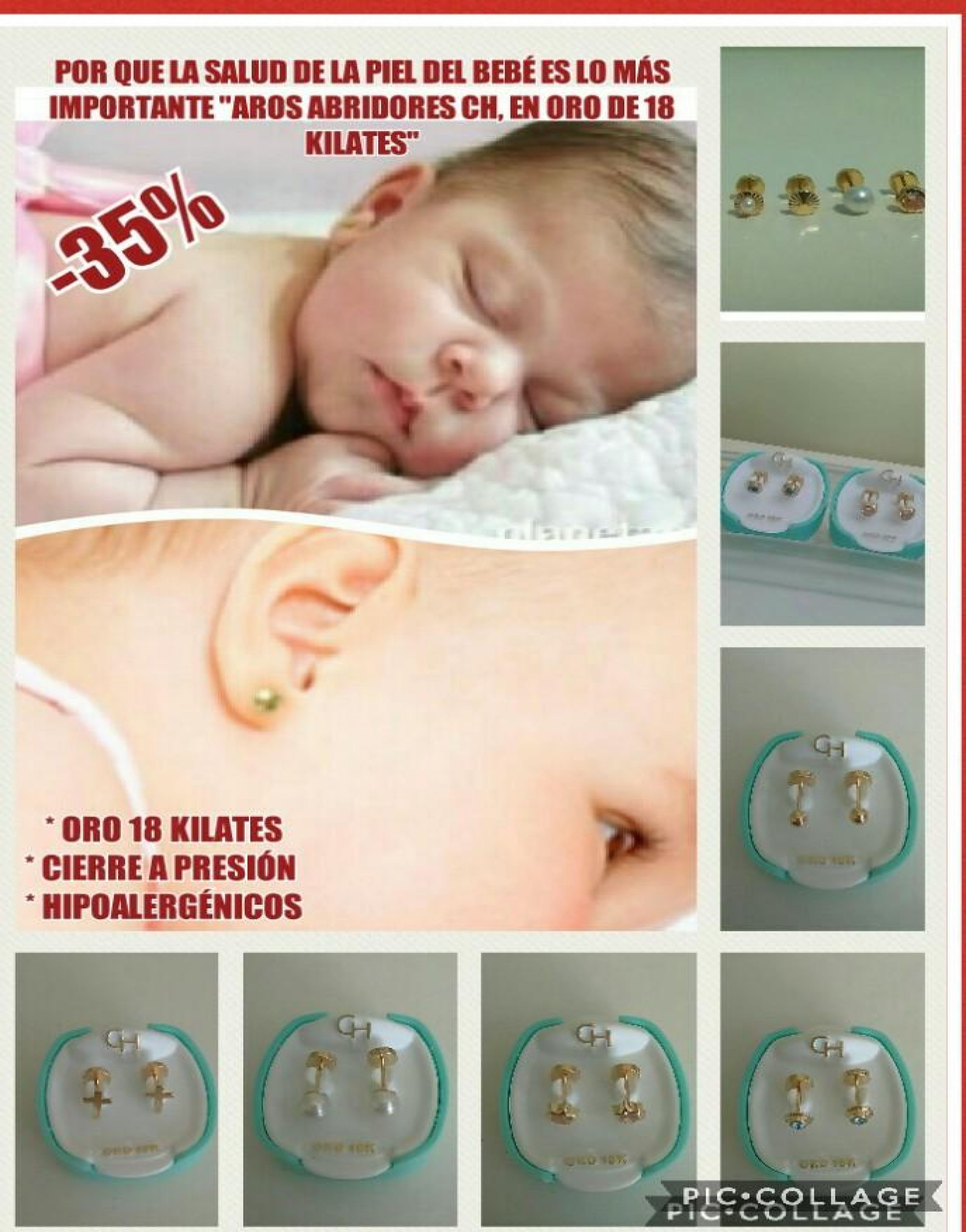AROS ABRIDORES ORO 18 KILATES. IDEAL PARA BEBES RECIÉN NACIDOS. HIPOALERGENICOS, CIERRE A PRESIÓN.
