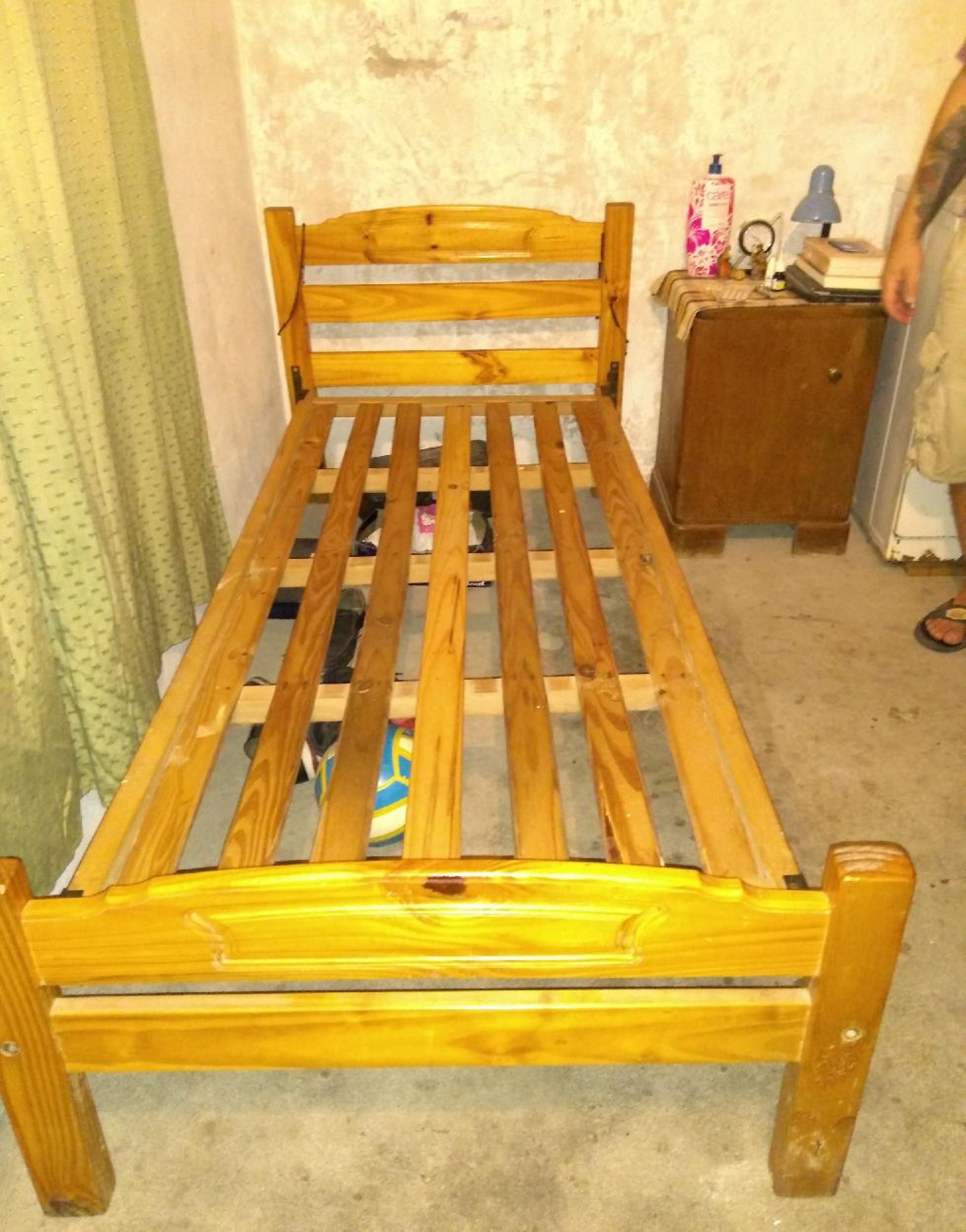 Cama de una plaza, con poco uso. Exelente estado, de pinotea reforzada.