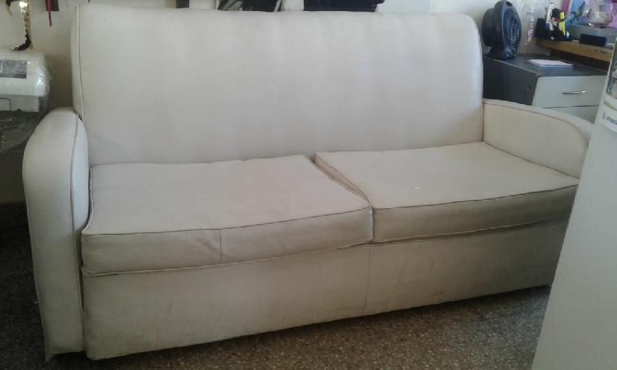 Vendo juego de sillones incluye un sillón de dos cuerpos y dos individuales de cuerina color blanco en buen estado