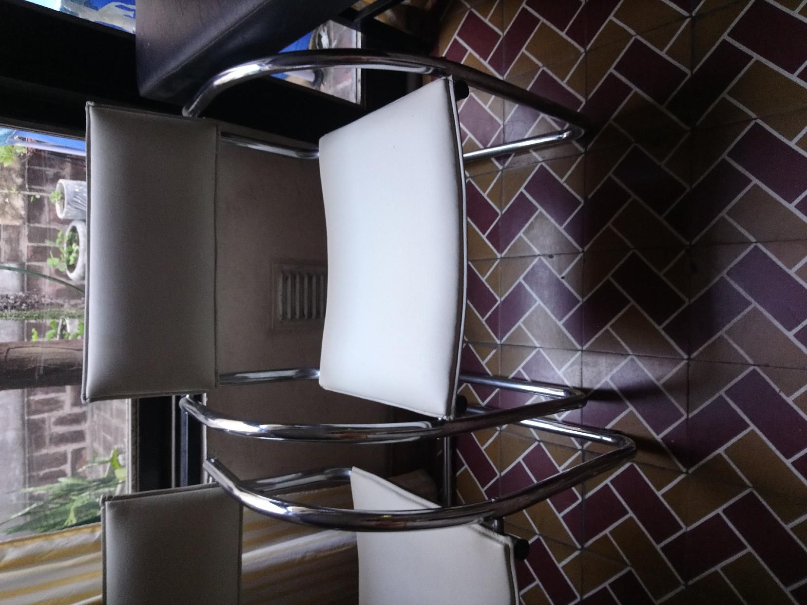 Sillas caño cromado con apoyabrazos y esqueleto de mesa caño cromado