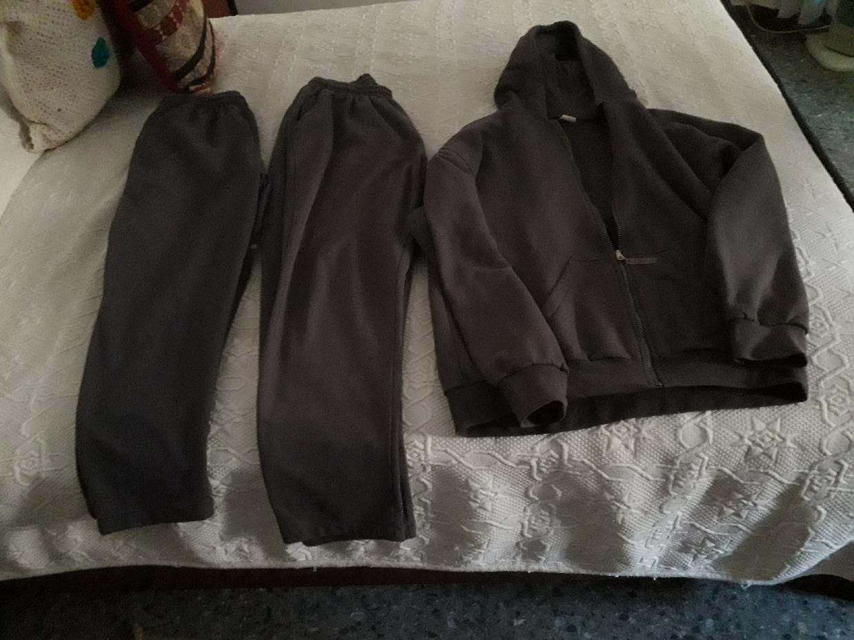 Se venden dos pantalones (L) y una campera (XL) marca Latino colegial gris topo en impecable estado.