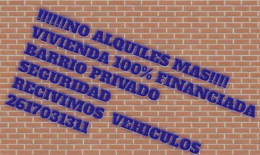 Deja de alquilar!!!! Plan habitacional 100% financiadoBarrio privado en la primavera guaymallen.Recibimos vehiculos!!2617031311