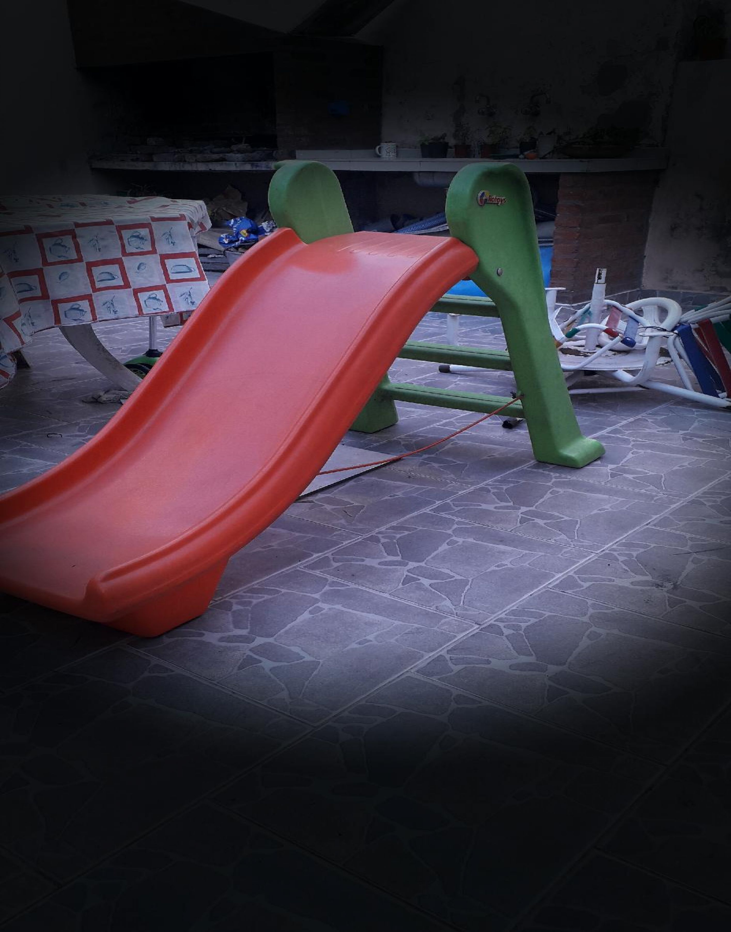 Tobogán usado irrompible de 4 escalones más calesita de regalo