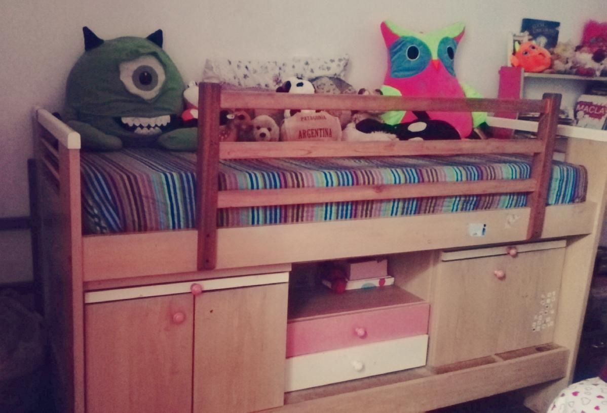 Cama de nena.1.25 de,alto..90 de ancho..usada, en buen estado.Tiene cajones y espacios de guardado.Trae escalera