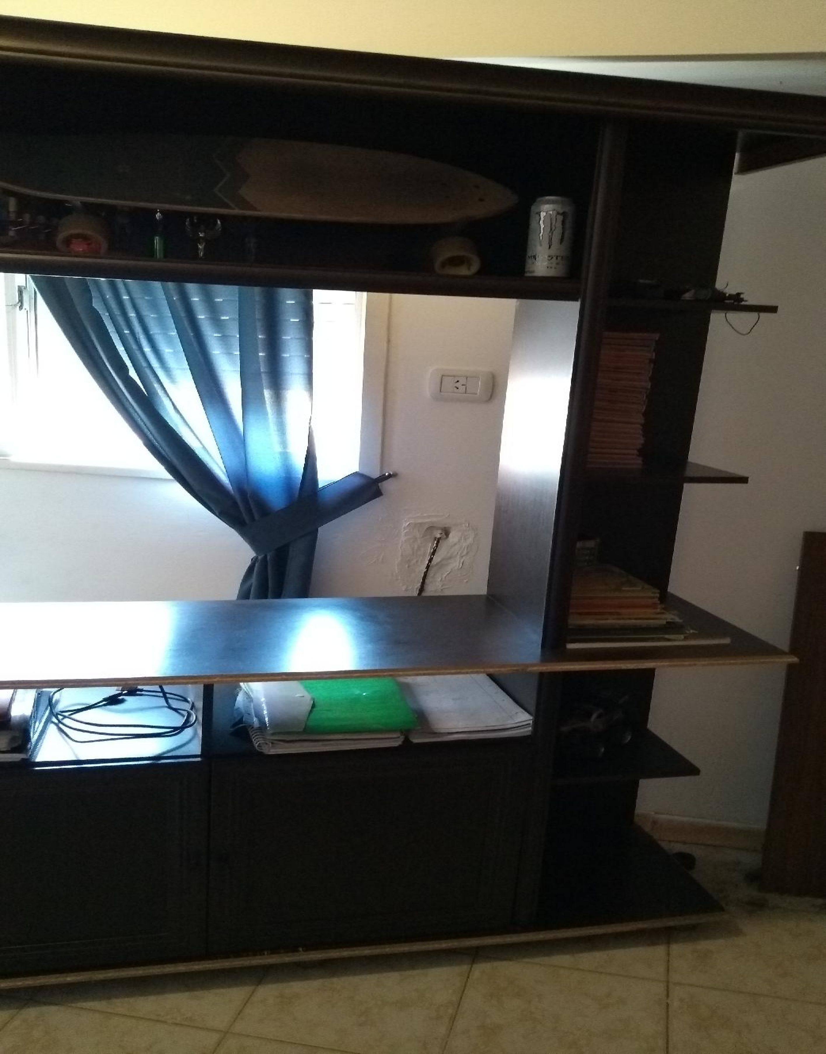 Tiene dos molduras desplegadas, habria que pegarlas (se ve en la foto)