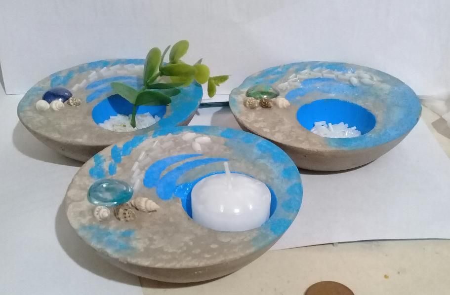 Hermosos portavelas rústicos originales de cemento barnisados con laca. Diferentes tamaños y modelos, se realizan a pedido. De acuerdo al tamaño se modifica el valor. Los pequeños $100, los grandes $200. La vela y/o cactacea va incluida.