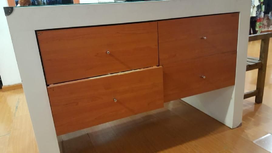 mostradores con cajoneras ideal para guardado de ropa o blanco, con cubierta de vidrio