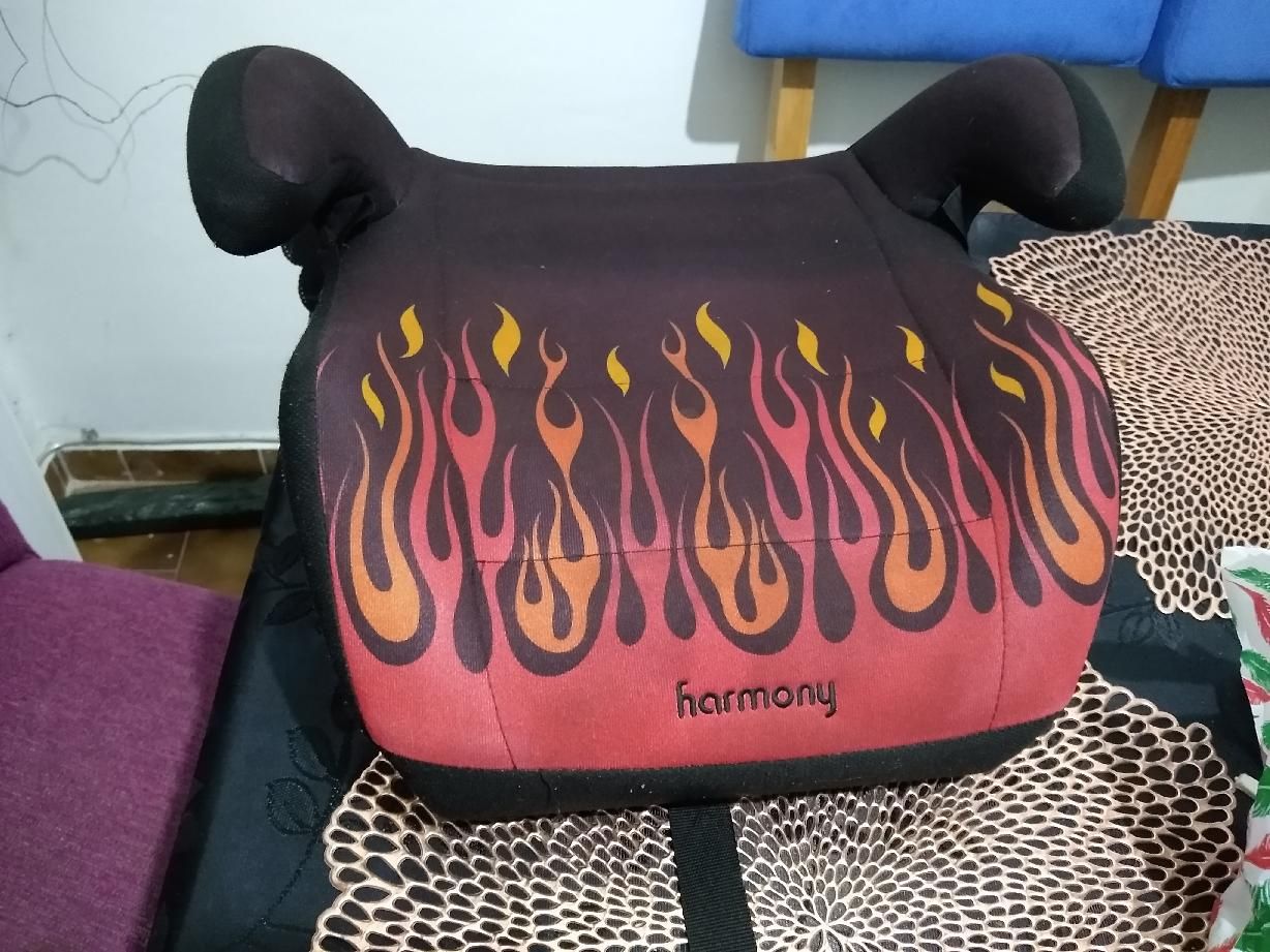 Booster sin respaldo negro con llamas rojas unisex .buen estado.capacidad 13kg a 45 kg.altura 86 cm a 144cm