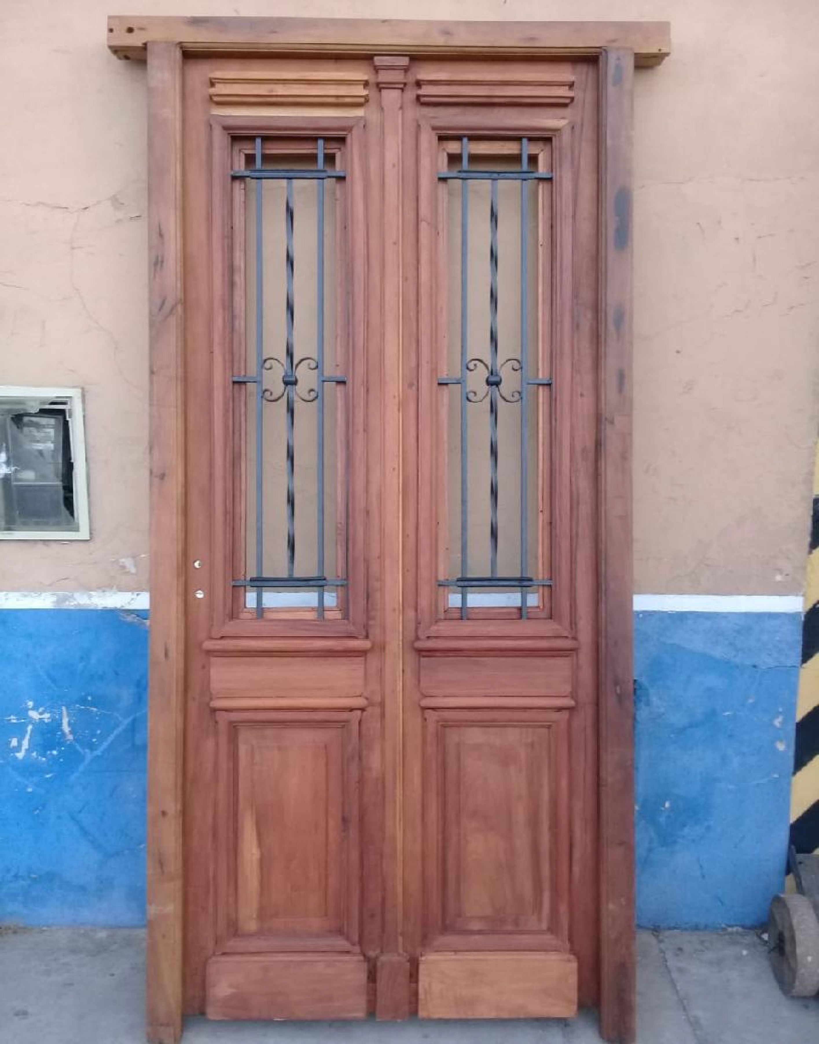 Puerta reciclada. Cedro . En dos hojas. Medidas: 1.30x2.40 . Rejas originales