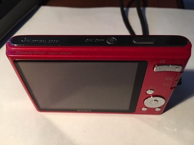 Marca: Sony Modelo: DSC-W330 Tipo: Compacta Línea: Cyber-shot Zoom óptico: 4x Resolución: 14.1 Mpx Tipo de sensor óptico: CCD Distancia focal equivalente a una cámara de 35mm: 26 - 105 mm Zoom digital: 2 x Medidas: 9.6 cm x 5.7 cm x 1.7 cm Peso: 130 g Rango efectivo del flash: 30 cm - 3.51 m Máxima velocidad de obturación: 1/1600 s Mínima velocidad de obturación: 2 s Correa -