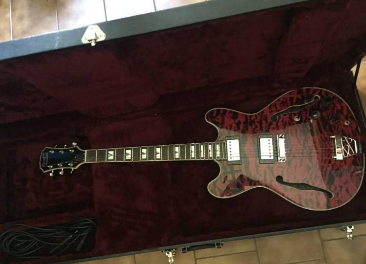 Guitarra eléctrica media caja impecable con estuche rígido