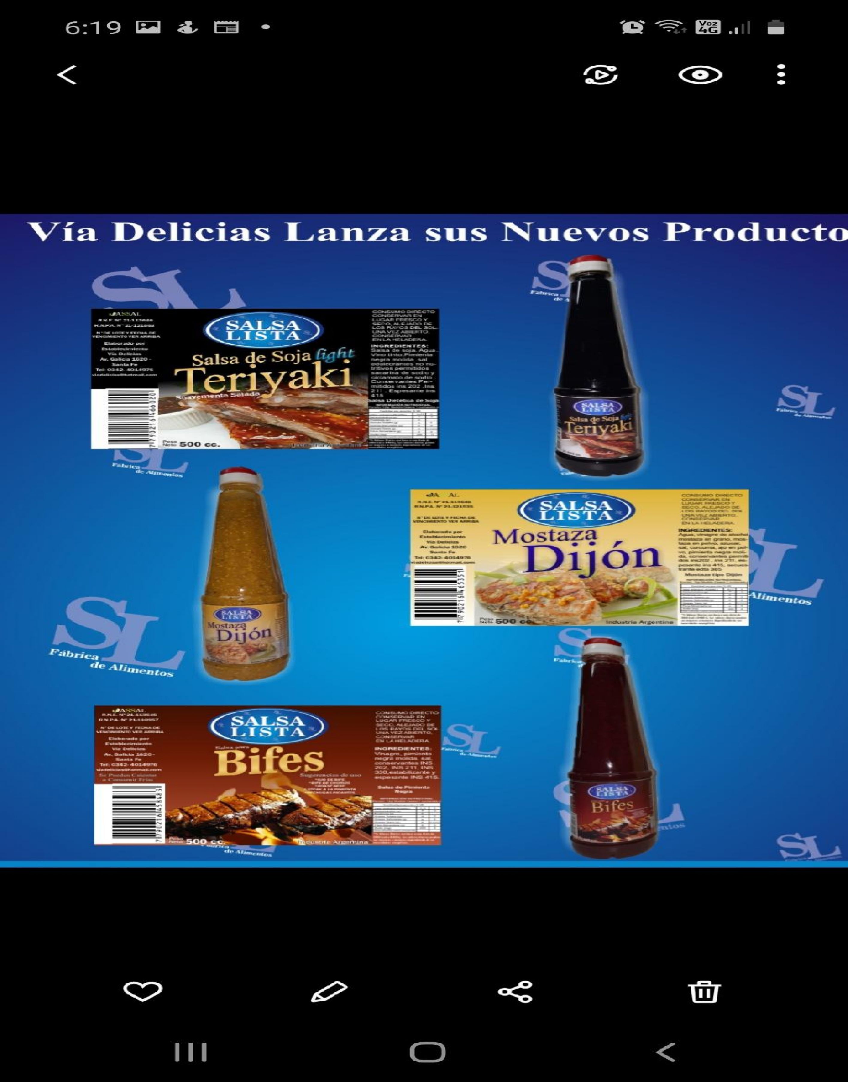 Salsas y aderezos listos para consumir, para asados, pastas,distintas preparaciones de carnes, pollos,pescados, verduras ,ensaladas.Precio de la publicación es por unidad. Se venden x cajas de 12 botellasPara distribuidores y revendedores precios especiales por compra en cantidad,consultar.