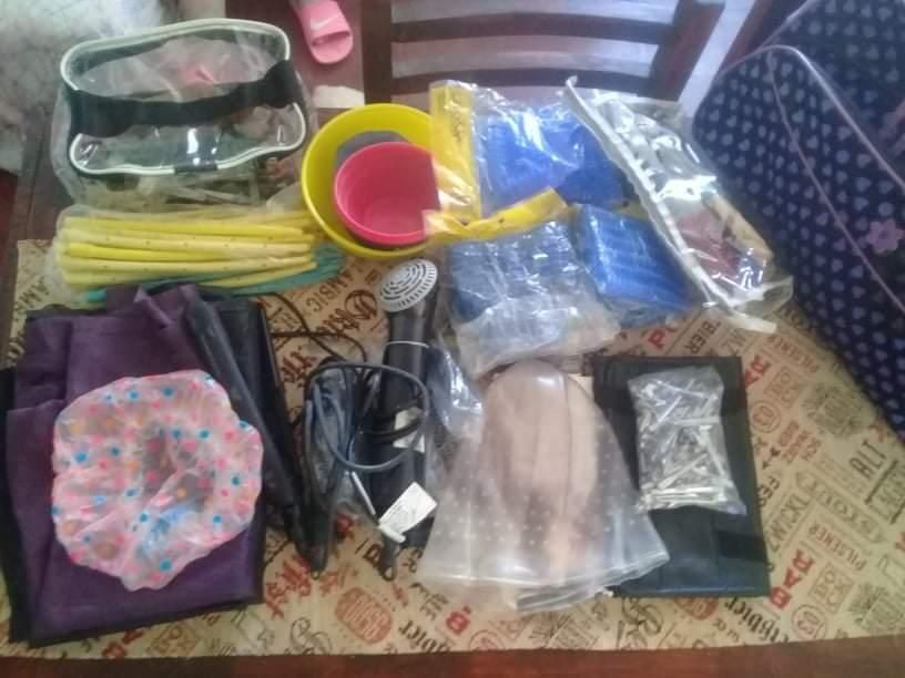 5 cepillos profesionalesPlanchita phillipsSecador modelador(no profesional)Estuche para tijeras y peinesTijera de entresacarNavajaBigudies plásticos para rulos permanentes Boumerang para rulos surtidos 40 piezasRedecilla triangularRuleros 6.7 y 10 tamaño3 recipientes para tintura3 pincelesPinzas variasGorro para hacer mechitas