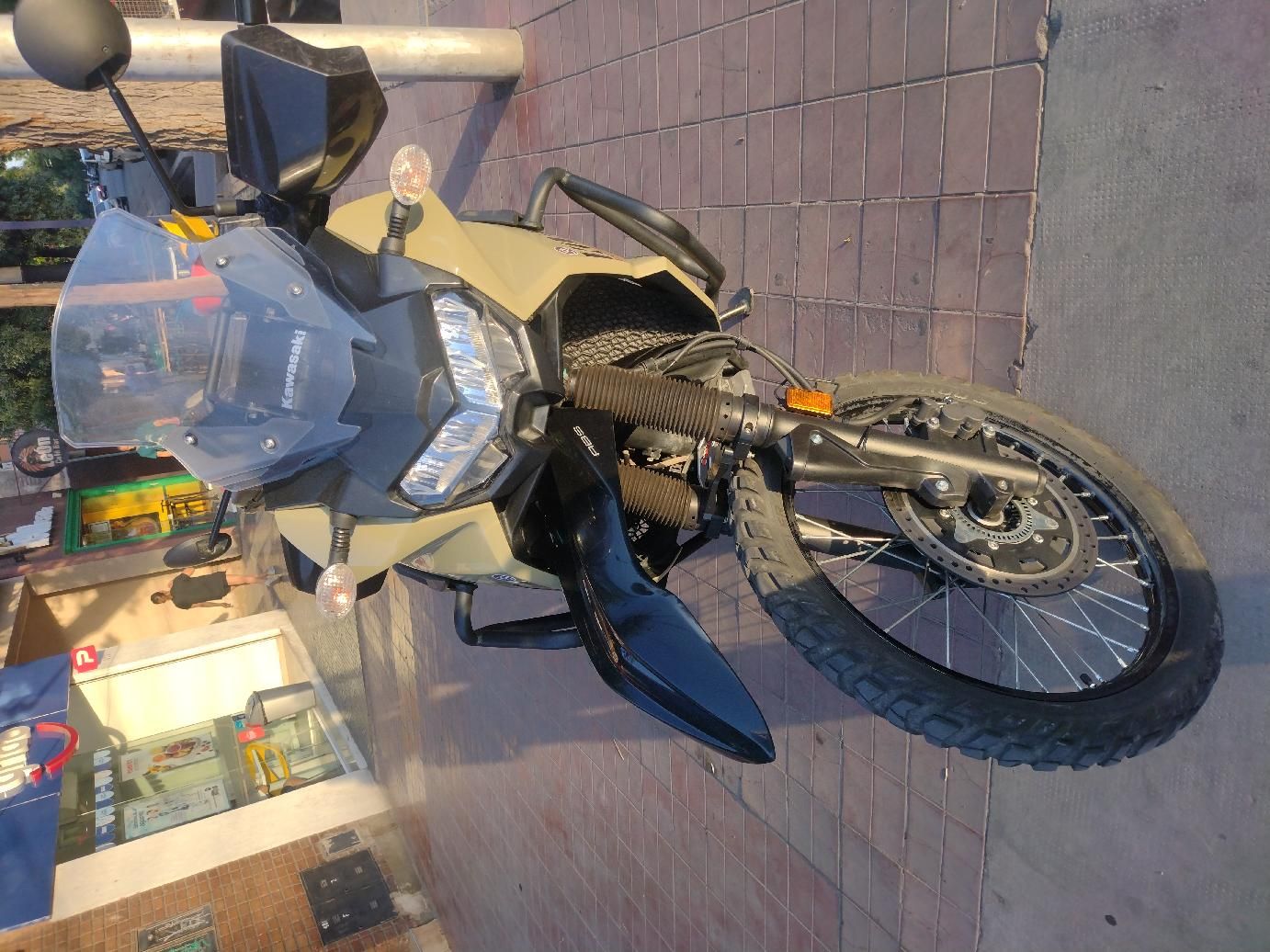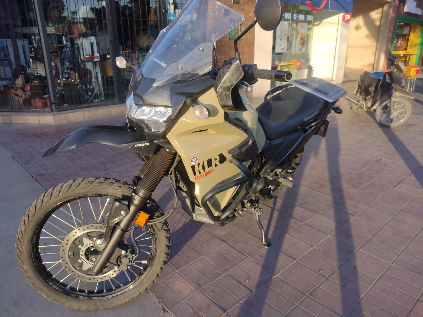 Klr 650 con accesorios cubre carter aluminio pedalines de acero estabilizador de dirección cubierta trasera nueva Continental k70 delantera Metzeler